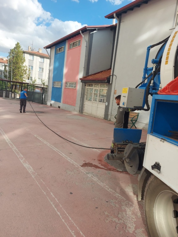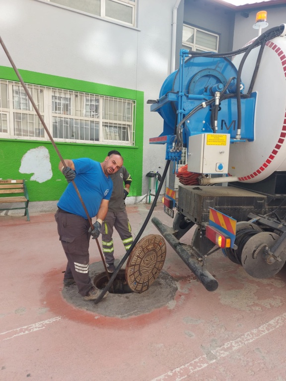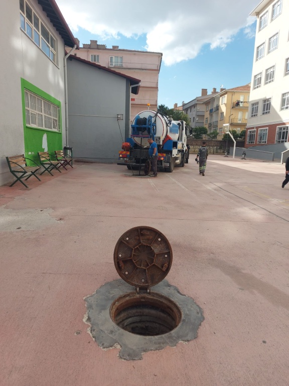 Okulumuz bahçesinde pis su giderlerinde meydana gelen tıkanıklık, özellikle beden eğitimi derslerinde öğrencilerimizi rahatsız eden pis kokuya neden oluyordu. Yapılan çalışmalar kapsamında rögar kapakları açılarak gerekli temizlik yapıldı, tıkanan hatlar açıldı ve ardından kirlenen alanlar yıkanarak temizlendi.